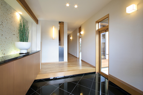 軒と庇を深くすることで、光と影の調和と数寄屋造りの外観に近代和風建築を取り入れた