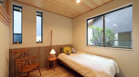 また、平屋を思わせる2階建ての外観は